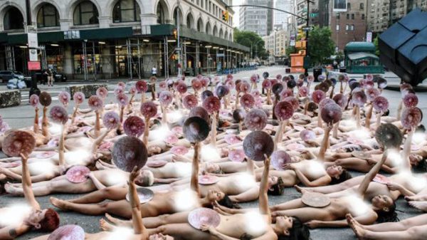 ফেসবুক এবং ইনস্টাগ্রামে শৈল্পিক নগ্নতা প্রদর্শনের বিরুদ্ধে ব্যবস্থা নেয়ায় নিউইয়র্কে ফেসবুকের প্রধান কার্যালয়ের সামনে নগ্ন হয়ে প্রতিবাদ জানিয়েছেন শতাধিক নারী ও পুরুষ। রোববার নিউইয়র্কে জনপ্রিয় এই সামাজিক যোগাযোগমাধ্যমের প্রধান কার্যালয়ের সামনে এ প্রতিবাদ অনুষ্ঠিত হয়। মার্কিন সংবাদমাধ্যম সিএনএন এক প্রতিবেদনে বলছে, রোববার সকালের দিকে প্রতিবাদকারীরা ফেসবুকের কার্যালয়ের সামনের রাস্তায় নগ্ন
